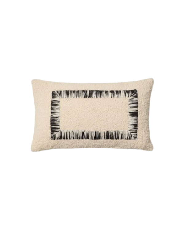 Esta funda de cojín aporta un toque de sofisticación a cualquier ambiente con su tejido bouclé de algodón, que destaca por su textura rica y envolvente. El detalle a contraste, elaborado mediante una aplicación manual la convierte en un elemento decorativo único.