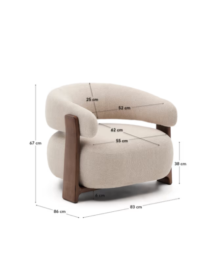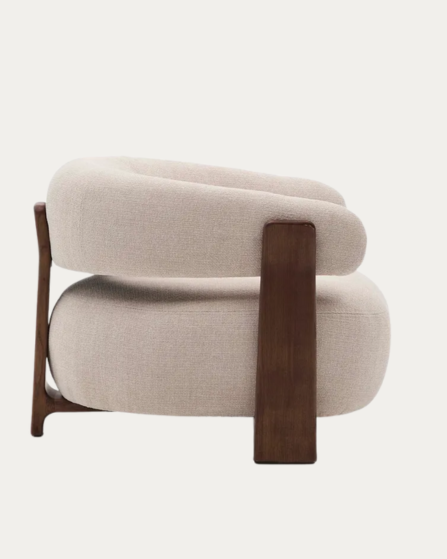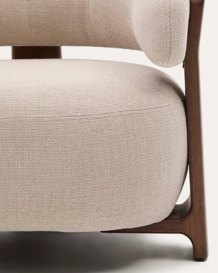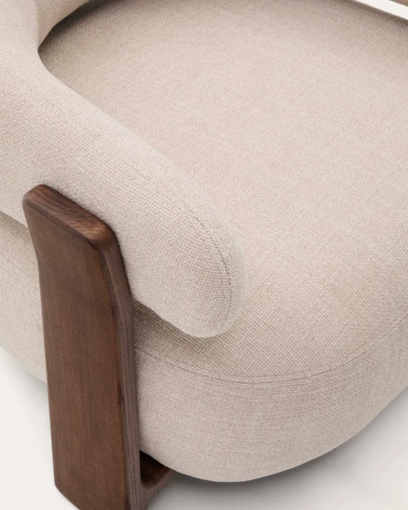 Butaca Granite de chenilla beige y patas de madera maciza de fresno acabado nogal FSC 100%