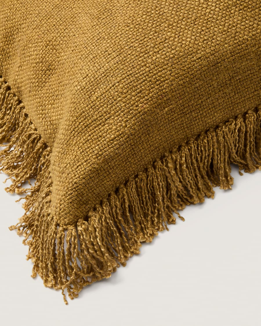 La funda de cojín de chenilla con flecos es una pieza pensada para aportar un toque distintivo y acogedor a cualquier espacio. El tejido de mezcla de algodón ofrece una textura suave y resistente, ideal para un uso diario. Cada funda está hecha a mano, lo que garantiza que cada ejemplar sea único, con ligeras variaciones que la hacen exclusiva. Los flecos aportan dinamismo y movimiento, sumando calidez a la decoración.