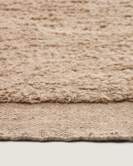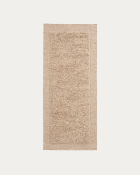 Esta alfombra pasillera combina la calidez de la lana con una doble textura que aporta profundidad visual y una pisada agradable. Está tejida a mano, lo que convierte cada pieza en exclusiva. Su pelo medio resulta suave al tacto y ofrece una sensación acogedora en cada paso.