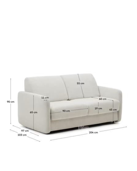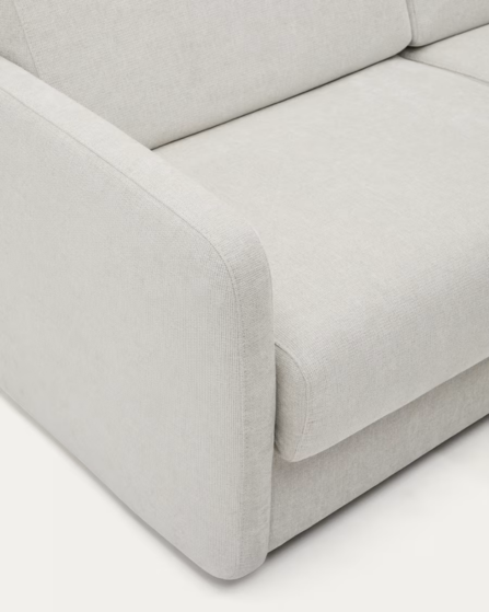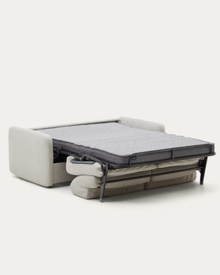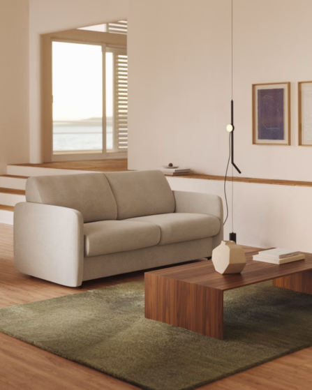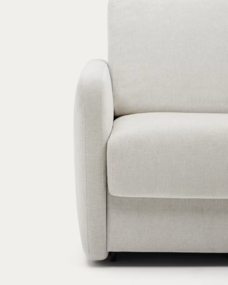 Este sofá cama destaca por su tapizado en chenilla de estructura pequeña, un tejido suave con tratamiento antimanchas que facilita el mantenimiento diario. Los asientos y respaldos desenfundables permiten una limpieza cómoda y sencilla, manteniendo siempre el sofá impecable.