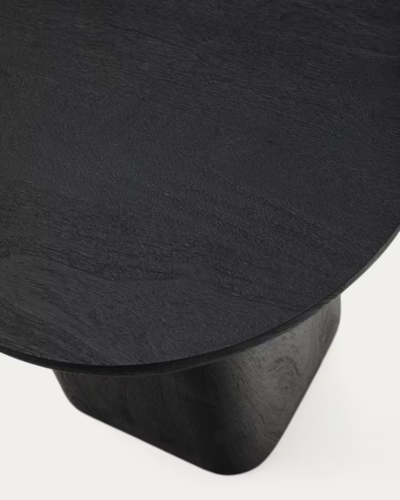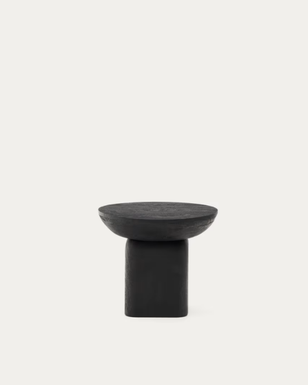 Esta mesa auxiliar de madera maciza de acacia combina diseño y funcionalidad en una pieza versátil y atemporal. Su acabado negro resalta la textura natural de la madera, permitiendo apreciar sus vetas y tonalidades únicas, lo que le aporta un carácter auténtico y elegante.