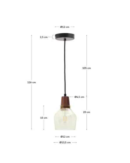 Lámpara de techo Silex de cristal verde y madera de nogal Ø 13 cm