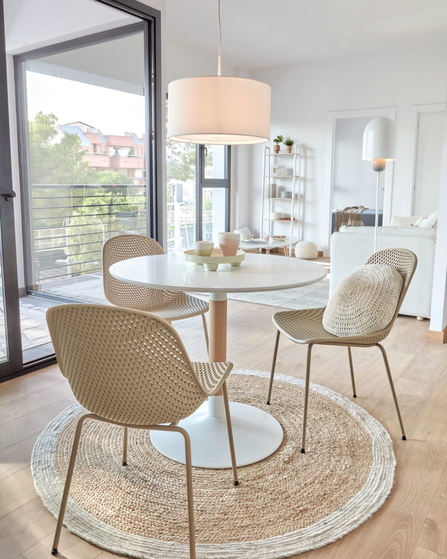 El asiento de la silla Quinby es de plástico reciclable y se apoya sobre una estructura de metal. Es una pieza polivalente con infinitas posibilidades para tus interiores y exteriores.