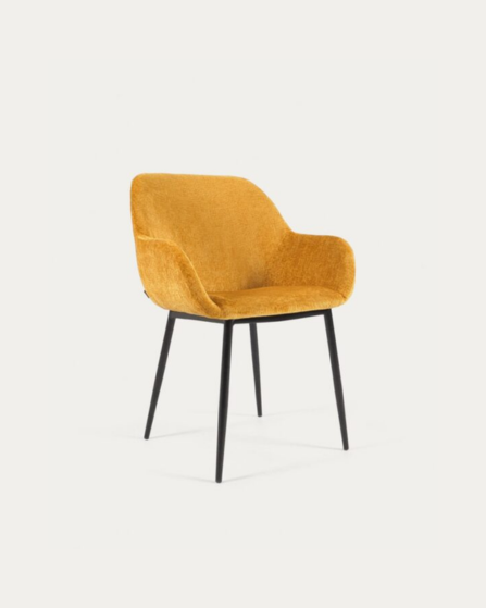 Silla Konna de chenilla mostaza y patas de acero acabado pintado negro