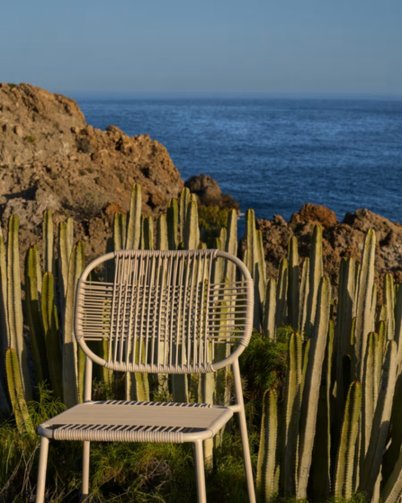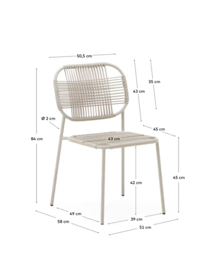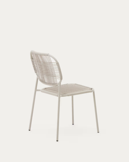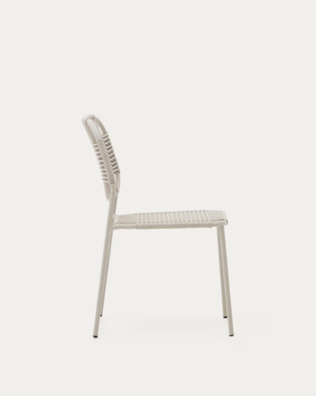 Silla de exterior apilable Talaier de cuerda sintética y acero galvanizado acabado beige