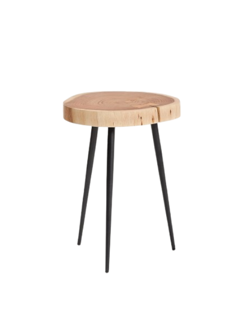 Mesa auxiliar Tanive de madera maciza de acacia con acabado blanqueado y patas de acero negro Ø35 cm