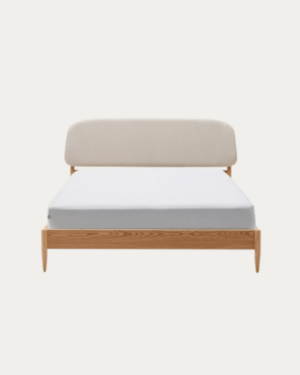 Q20,800.00Cama Octavia de madera contrachapada de fresno y cabecero tapizado blanco 180 x 200 cm -