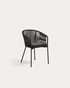 Silla de cuerda negra Yanet con patas de acero galvanizado