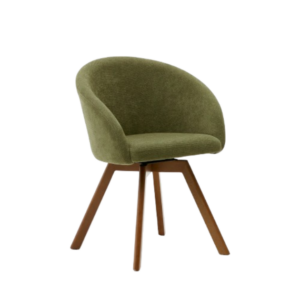 Silla giratoria Marvin chenilla verde y patas de madera maciza de haya acabado nogal FSC 100%