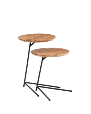 Set Vintara de 2 mesas auxiliares nido de madera maciza de acacia con acabado blanqueado y patas de