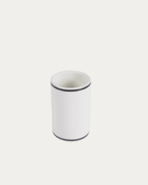 Portacepillos Arminda de cerámica blanco y detalle negro