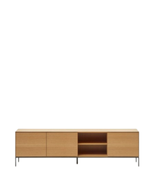 Mueble TV Vedrana 3 puertas de chapa de roble y patas de acero negro 195 x 55 cm
