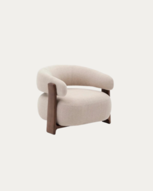 Butaca Granite de chenilla beige y patas de madera maciza de fresno acabado nogal FSC 100%