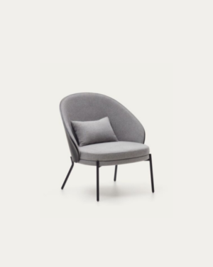Sillón Eamy gris claro chapado en fresno con acabado negro y metal con acabado negro