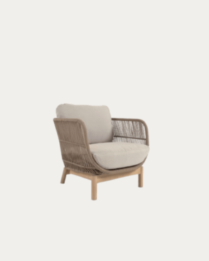 Butaca Catalina de cuerda beige y madera maciza de acacia FSC 100%