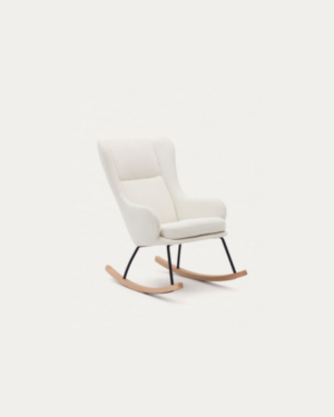 Mecedora Maustin de borreguito blanco y estructura de acero negro y madera de haya