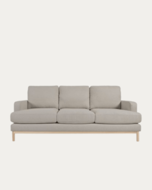 Butaca Granite de chenilla beige y patas de madera maciza de fresno acabado nogal FSC 100%