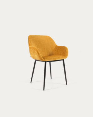 Silla Konna de chenilla mostaza y patas de acero acabado pintado negro