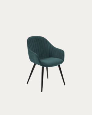 Silla Fabia terciopelo turquesa y patas de acero con acabado negro