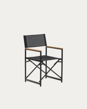 Silla plegable de aluminio negro Llado con reposabrazos de teca maciza 100% adecuado para exteriores