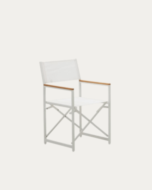 Silla plegable de aluminio blanco Llado con reposabrazos de teca maciza 100% adecuado para exteriores
