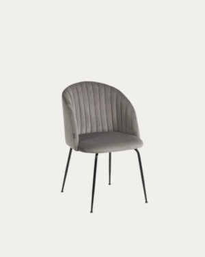 Silla Lumina terciopelo gris claro patas acero acabado negro