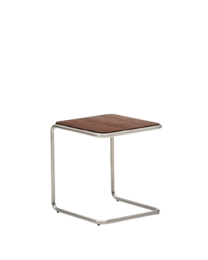 Mesa auxiliar Tarsel de chapa de nogal FSC 100% con estructura de acero inoxidable cepillado 42 x 47