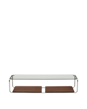 Mesa de centro Tarsel de cristal templado y bandeja de chapa de nogal FSC 100% con estructura de ace