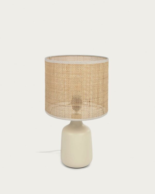 Lámpara de mesa Erna de cerámica blanco y bambú con acabado natural